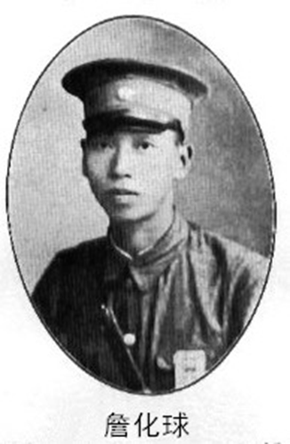 1925年年底,黄埔军事政治学校第五期招生,他早就知道,该校是孙中山先生为了培养自己的军事和政治人才,组成以黄埔学生为骨干的革命军,实行武装推翻帝国主义和封建军阀在中国的统治,完成国民革命为目的一所学校。这和他一贯追求的目标完全相一致,于是,他告别了母亲和新婚妻子,只身前往广东报考,被录取在工兵科。同科同时被录取的还有宁海璜溪口人邬子匀(抗战胜利时晋升为少将副师长),异地遇同乡人,分外感到亲切。为了表明要在革命大洪炉中冶炼自己,彻底改造世界观,他改名“化球”,字“赤生”。次年3月开学,他成为一名正式五期“本科生”。经过了一年半紧张的理论知识学习和实践训练,并通过了严格和全面考试,1927年8月15日,以前三名的优秀成绩毕业。同期毕业的有共产党人赵尚志、陶铸、许光达、宋时轮等;国民党人有胡琏、黄剑夫、邱行湘等人。尽管各人信仰不同,但一心救中国的目标都相同一致。