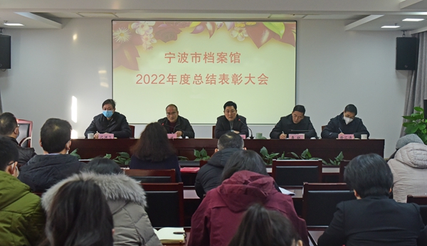 会议宣读了宁波市档案工作指数评价全省第二,参与修订的档案行业标准《档案库房智能化建设规范》列入2022年档案行业标准制修订计划,承担的全国电子文件单套归档和电子档案单套管理试点项目被批准通过验收,宁波市(市本级)列入浙江省档案工作数字化转型示范区创建试点,馆优秀公务员等2022年度获得的各项荣誉和先进集体、先进个人。