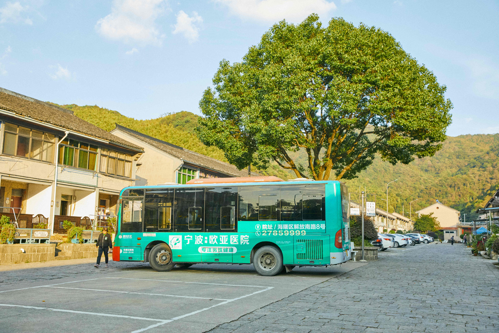 新村设计极富前瞻性。村里设立了车站,宽阔的道路同村外公路相连接,公共汽车从宁波市区直达村内。当年,每天有三班公共汽车往返于宁波汽车东站和村里。公共汽车停泊在凤仪门旁边,驾驶员和售票员住在村招待所,每天清晨6点多,早班车就从村里出发,载着村民到市区开会、做生意,下午4点,末班车回到村里宿夜。