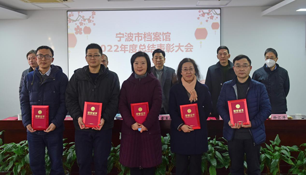 会议宣读了宁波市档案工作指数评价全省第二,参与修订的档案行业标准《档案库房智能化建设规范》列入2022年档案行业标准制修订计划,承担的全国电子文件单套归档和电子档案单套管理试点项目被批准通过验收,宁波市(市本级)列入浙江省档案工作数字化转型示范区创建试点,馆优秀公务员等2022年度获得的各项荣誉和先进集体、先进个人。