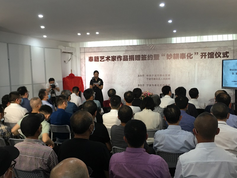 签约仪式由奉化区365bet体育投注导航_365彩票合法吗_365账号限制登录不了馆长竺月飞主持,奉化区副区长张雄、宁波市文联主席杨劲分别致辞。仪式上,捐赠代表奉化籍艺术家王利华先生发言,副区长张雄代表奉化区人民政府分别与捐赠人、捐赠人代表签署捐赠入藏协议,奉化区人大副主任杜中权、区政协副主席周海飞为“妙耕奉化”展馆揭牌,奉化区委副书记、政法委书记徐震宇在仪式上作重要讲话,宁波市365bet体育投注导航_365彩票合法吗_365账号限制登录不了馆长鲍娴萍宣布“妙耕奉化”展馆正式开馆运行,来自甬、奉两地相关单位和文艺界领导及嘉宾近40人见证了隆重喜庆的一刻。仪式上还播放了捐赠名家的介绍短片,最后,嘉宾们移步“妙耕奉化”展厅参观欣赏了“一生耕耘纸为画”——王利华先生画展。