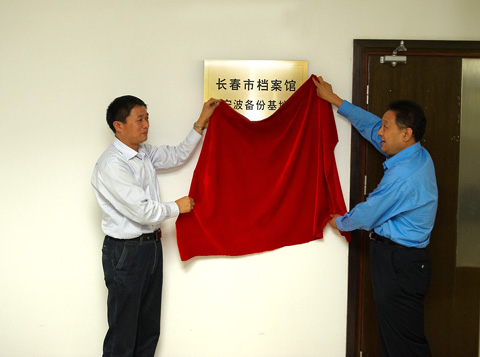 长春市档案局副局长李红明与宁波市档案局副局长马振华共同为长春市365bet体育投注导航_365彩票合法吗_365账号限制登录不了宁波基地揭牌