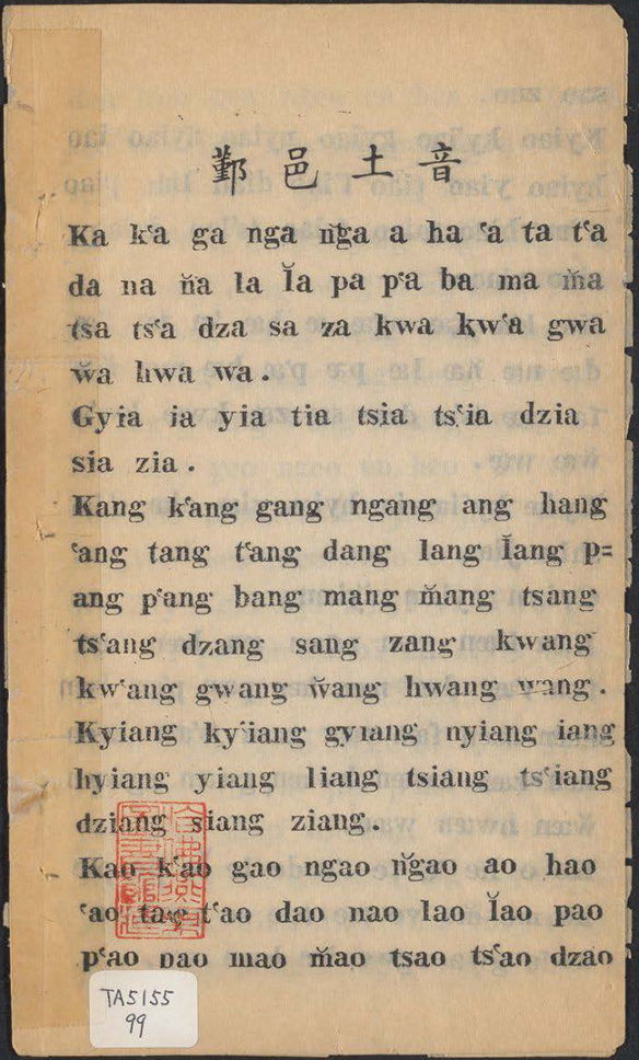 《鄞邑土音》列明了当时宁波方言音节的具体组合方式,是直接反映开埠时期宁波城区音系的最早资料。它是中国最早使用罗马字母拼写、教学汉语的文献之一。该书的发现有着重要的文献价值和史料价值,它见证了近现代中国文字改革、语言文字文化发展产生过程,且对近现代中国汉字改革运动有较大的影响和示范作用,也是宁波作为“名城名都”重要的档案文献史证。